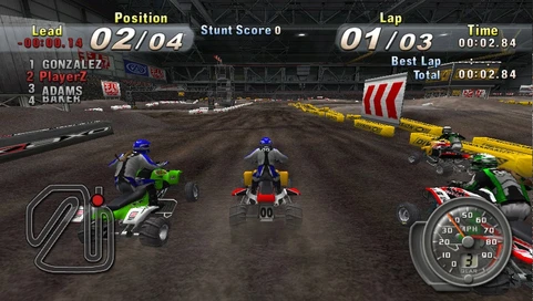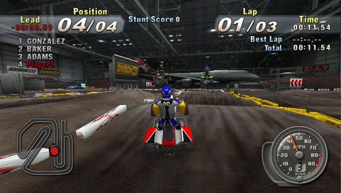 ATV Offroad Fury: Blazin’ Trails is an All Terrain Vehicle racing game where players can compete with the computer on a number of different dirt tracks. There are several ATVs to choose from and each one can be customized to some degree. Players can perform stunts by pressing certain button combinations while in the air. This game also features a training mode where players are taught the basics of the game as well as a career mode that allows them to use the same save throughout a series of races. ATV Offroad Fury: Blazin’ Trails also featured multiplayer functionality which is no longer available on the PSP.
