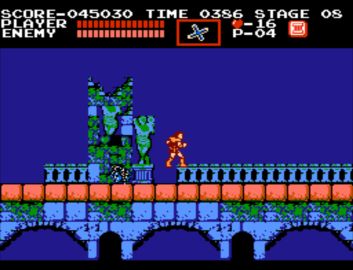 Simon will have to overcome five classic horror bosses, including Medusa and Frankenstein’s Monster before facing off against Dracula. Beating a boss will grant the player an orb that will fully restore Simon’s health. Players get three lives and infinite continues to start and can earn more lives by racking up points. There is no save system for Castlevania.