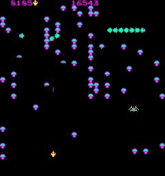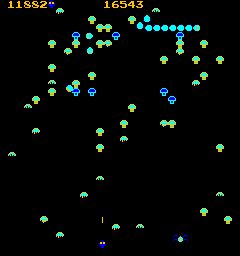 The action becomes more intense as the player destroys centipedes. Creatures speed up their movements, new enemies appear, and the centipede will begin moving erratically. Players who manage to survive long enough to rack up enough points can enter their initials on the high score board.