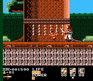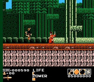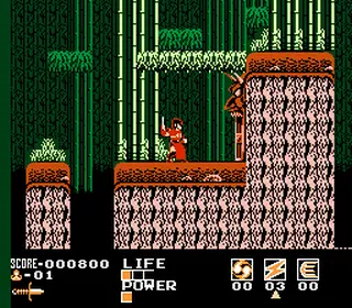 This is the toughest stage in some ways even though it’s the first. You will not have good weapons and your range of attack is very limited at this point, so get used to stunning enemies with a shuriken, then finishing them off with the sword. If you are good with the sword you can defeat enemies fairly safely with it. You can climb the bamboo trees in this stage by pushing up while standing under them or jump up into the branches. This is a good way to get to safety.