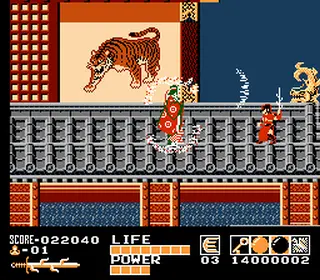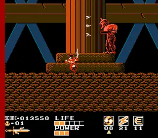 The Power Dart in this stage will max out the shuriken, but it is highly optional. Mystic gates in this stage are often located near dangerous pools of boiling liquid and you may have to fight a difficult mid-boss that looks a bit like a Hindu deity with several arms.