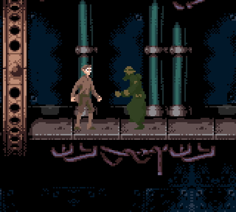 Disney’s Atlantis: The Lost Empire takes place in stages based on locations from the film that include the Ulysses and Atlantis itself as well as a number of other places. This title features basic platformer activities like battling monsters and jumping over pits. Players can fight enemies with Milo’s bare hands or special weapons like the boomerang, which are hidden throughout the stages. Finding a radio will allow the player to switch between characters. Each character has a special set of talents that are needed to progress through certain obstacles. Milo can decode cyphers, Mole can dig through floors, Viny can blow stuff up, and Audrey can get to hard to reach areas. Players can continue using the game’s built in password system.