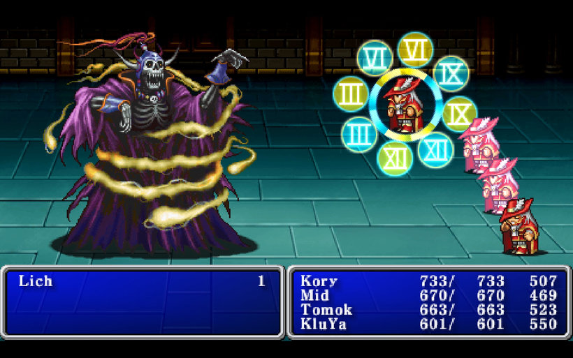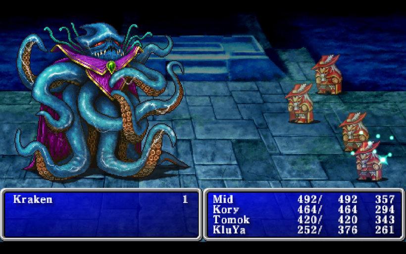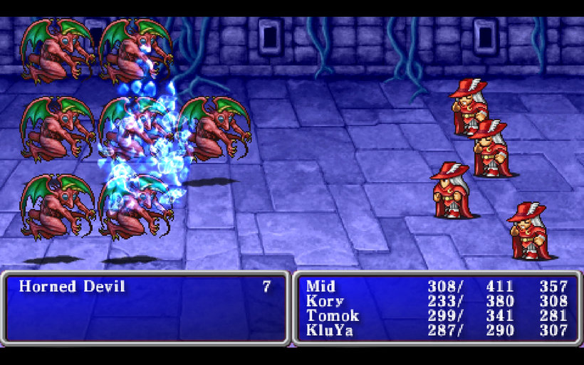 Players will have to fight monsters to earn experience points and level up in order to become stronger as well as earn money to buy equipment. The world of Final Fantasy is packed with towns and dungeons to explore. In towns, players can buy weapons, armor, magic, and healing items as well as rest at the inn to restore magic points and hit points. Many towns have a clinic where players can revive fallen allies. Dungeons are home to dangerous monsters as well as fabulous treasures. Many dungeons are vital to the story line and must be completed to proceed.
