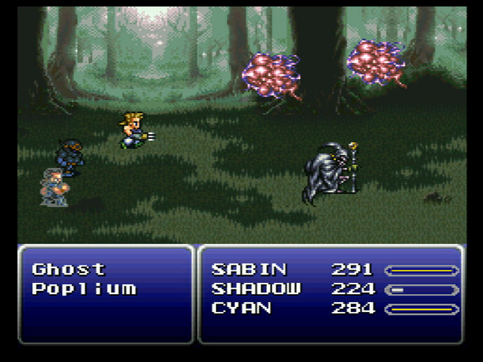 While the heroes were generally fun to use, some of them had fairly useless abilities or, worse yet, bugged skills that could break the game. Cyan, a master of the sword, has one the coolest skill sets of all the heroes. Selecting his Sword Tech skill and waiting for the bar to fill up allows him unleash powerful attacks. Unfortunately, everyone in the party has to hold his or her turn while Cyan’s bar fills up, which makes the skill kind of useless unless you are using one of the low level Sword Techs. Another character, Relm, uses a skill that’s so badly bugged it can crash the game, though it’s only fair to point out that there is an item not only upgrades her skill, but also fixes the bug inadvertantly.
