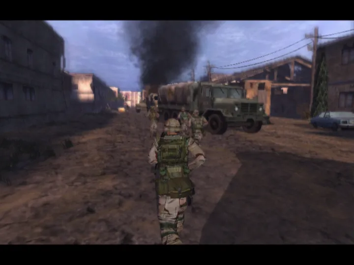 Full Spectrum Warrior takes place in Zekistan, a fictional nation in the middle east, which has attacked several bases owned by the US and UK. The UN has voted to remove Zekistan’s tyrannical leader for committing various war crimes. Players control two US Army fireteams and they battle their way through Zekistan over the course of several missions. Each mission has its own objectives. Players can start a tutorial in MOUT training or jump into the action right away.