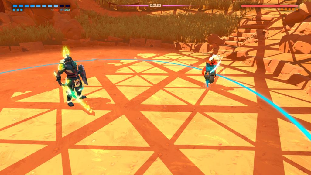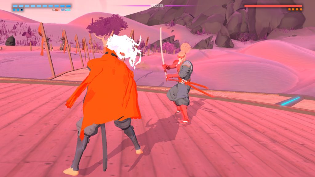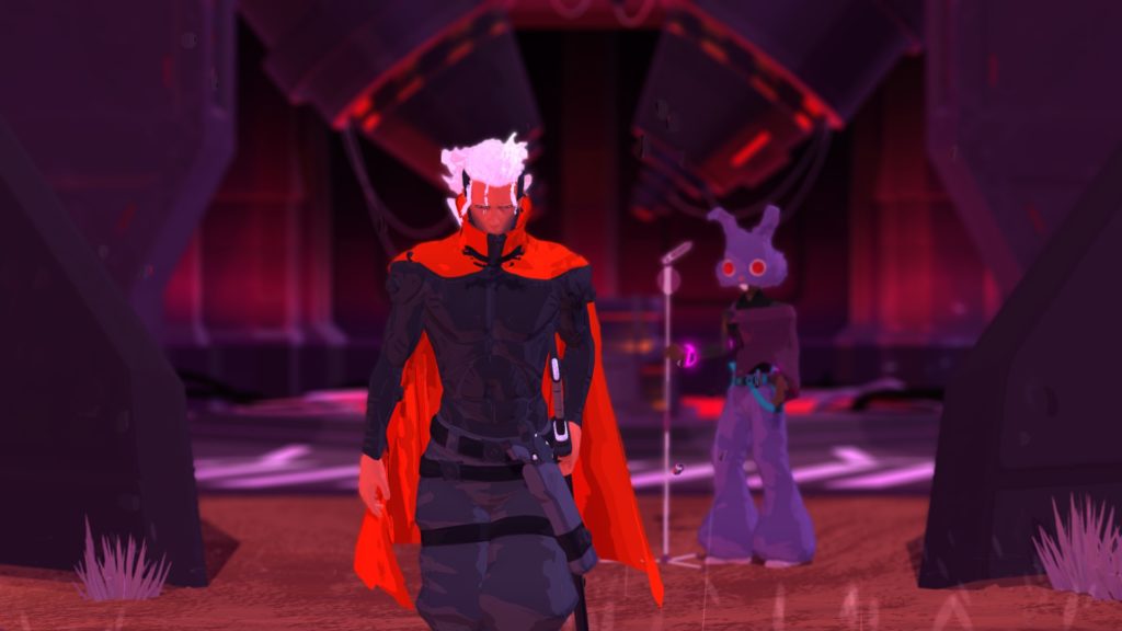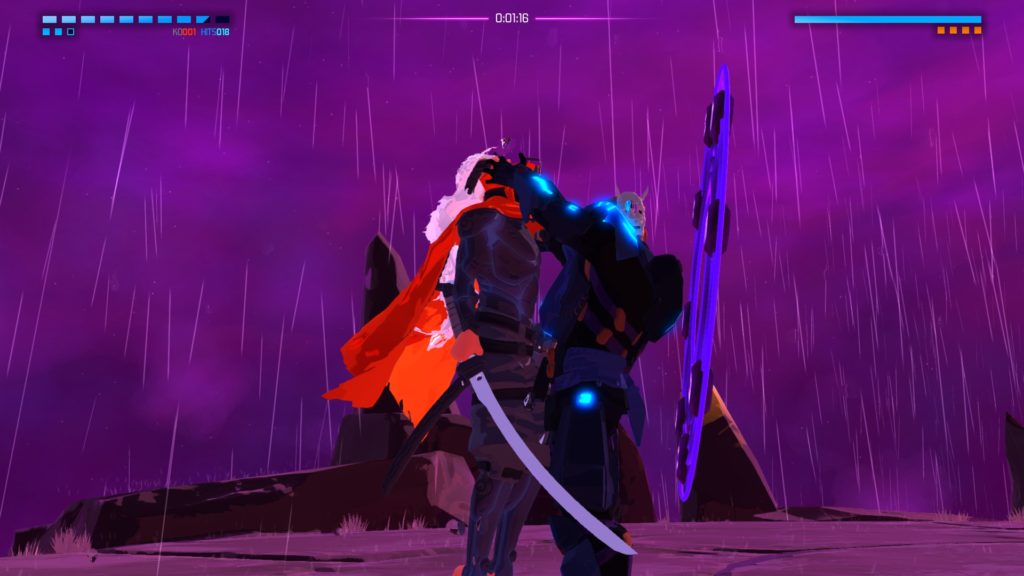 Furi is an action game made by The Game Bakers where the player must defeat a series of bosses in one on one duels. The protagonist, a mysterious man known only as The Stranger has been confined in a futuristic prison guarded by unique bosses. In order to break free, The Stranger must employ his guns and swordsmanship against the guardians. Players will be able to parry attacks, charge up their gun, unleash sword combos, and perform a variety of other moves. Bits of story are revealed as The Stranger makes his way through the prison between battles, which also serves as down time, since combat in this game is fierce and often prolonged.
