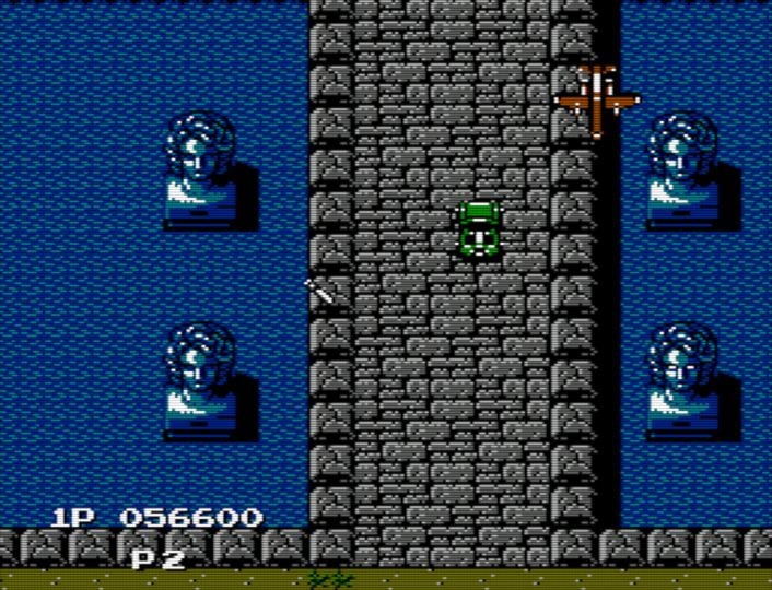 You are a member of an elite Jeep unit whose mission is to save prisoners of war who are confined deep in enemy territory. Two players can control their own Jeeps simultaneously in Jackal as they blast through enemy troops and tanks. The Jeeps are armed with a forward firing machine gun and grenades that can be thrown in any direction. POWs can be rescued from buildings that must be blown open using a missile or grenade. Collecting flashing POWs will upgrade the player’s grenade to a missile that will explode into shrapnel if further upgraded. Helipads, where POWs can be dropped off, are found in each stage. There’s also a powerful boss waiting at the end of every level.