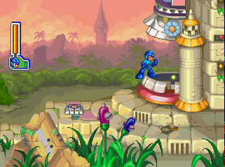 Mega Man 8 follows the same formula as it’s predecessors: the player is given a choice of stages that can be beaten in any order. At the end of each stage waits a robot master that Mega Man must fight. Defeating the boss rewards the player with a new weapon that is more powerful than the standard MegaBuster and super effective against particular bosses. Players can also upgrade Mega Man in a number of ways by using bolts found in each level to purchase powerups like burst fire. Rush, Mega Man’s robotic dog, makes his appearance in this title as well and can assist players in a number of ways that range from dropping healing items to turning into a motorcycle that one can ride.