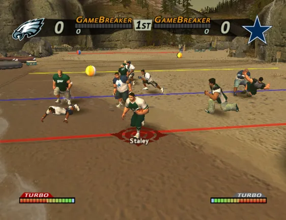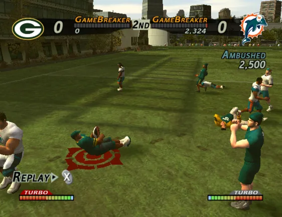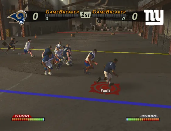 NFL Street is an American football game that uses “street football” rules rather than the formal NFL rules that appear in most football video games. Players do not wear helmets nor much of the protective gear worn in professional football and teams are limited to seven players. Penalties are also reduced, especially for those involving roughness, and there are no fouls. EA also added some special mechanics to the game, like Style Points, which can be earned through pulling off difficult plays or by taunting the other team. If a player earns enough Style Points, he will go into Game Breaker mode. Game Breaker gives the player an offensive or defensive advantage over his opponents, allowing him to smash through defenders if in possession of the ball or more easily block the other team if they have the ball.