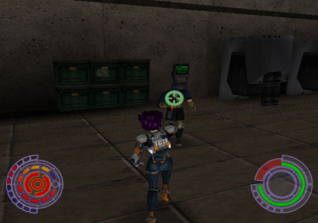Action is the main focus of this game, with an emphasis on hand-to-hand combat. Konoko can punch, kick, and throw enemies as well as perform a number of acrobatic moves. Players can even attempt to sneak up on bad guys to get the first shot in. The main character will also find guns like the pistol and plasma rifle that will allow her to fight at range, though ammo for such weapons is finite. Konoko has limited health that can be restored with Hypo Sprays. Much of Oni’s gameplay revolves around completing mission goals and exploring.