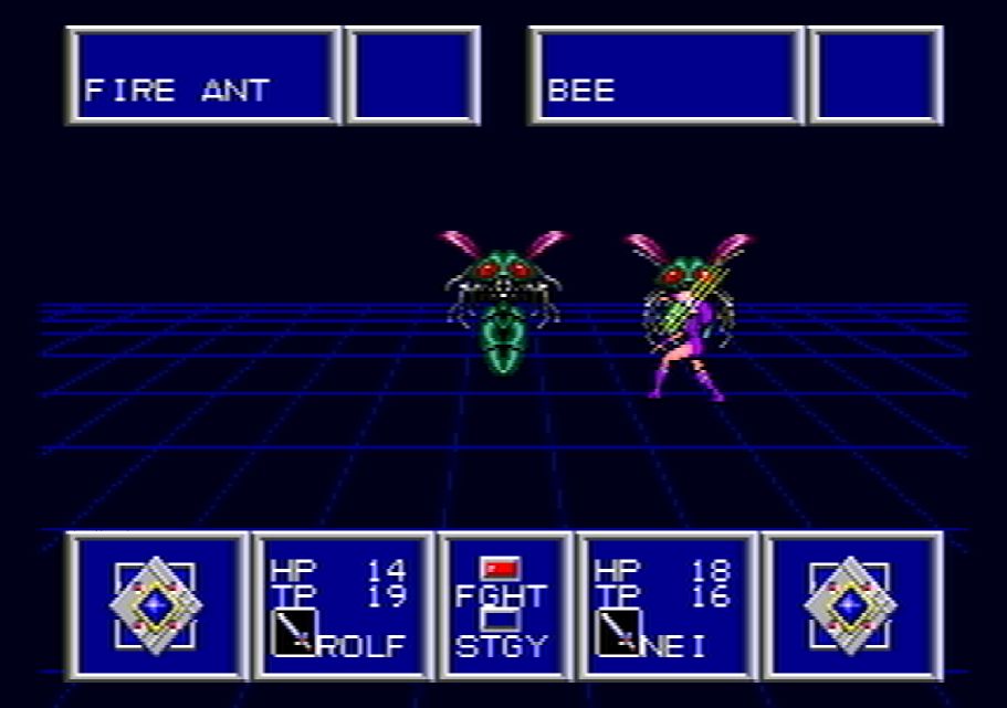 Join Rolf as he investigates the appearance of strange monsters on his homeworld of Mota 1,000 years after the events of the first game. Players can recruit up to 8 characters as they explore Mota and the other worlds in the Algo system. Rolf and many of the playable characters learn Techs as they gain levels. These include healing abilities, attack abilities, and more. Every character can equip a variety of weapons and armors that can be found in dungeons or purchased in shops. Players will have to piece together clues from townspeople to find dungeons and advance in the story. Traveling around Mota is made easier by teleporters and the Ryuka Tech, which sends the party to the last town the player saved their game in. Phantasy Star II allows people to save their game and continue at another time using a built in battery save.
