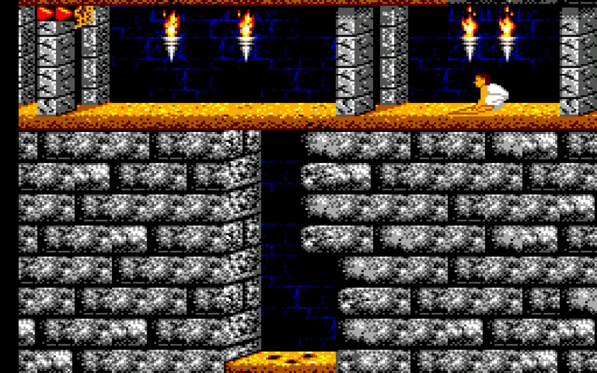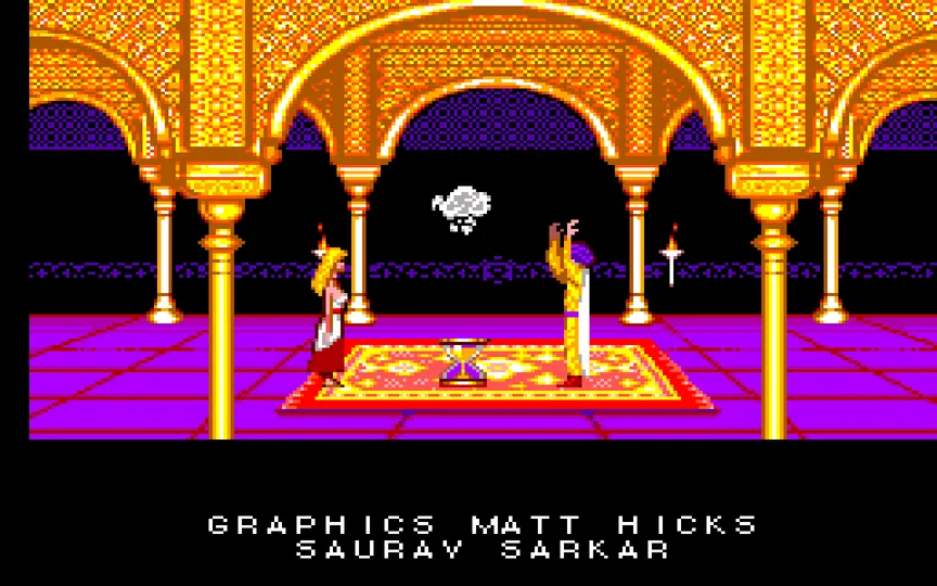 The evil wizard Jaffar has taken the princess hostage and given her an hour to live unless she agrees to marry him. Players control an unnamed hero who’s goal is to navigate the palace, defeat Jaffar, and save the princess. Deadly traps, the palace guards, and tricky obstacles stand between our hero and the princess. Time is also counting down as players only have an hour to make their way through the palace maze. Luckily the hero is a skilled swordsman and acrobat who can climb up ledges. Players will also find health potions that add to the hero’s life meter and a password system makes it possible to continue from various checkpoints.