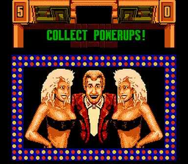 Participate in the world’s deadliest game show in Smash T.V. for the NES. The object of the game is to survive waves of deadly mutants, cyborgs, and killer machines in a game show themed arena. Defeat all of the enemies in a room and you can move onto the next challenge. Get hit just once and you are history. Luckily, players are given several lives and can find a variety of power ups.