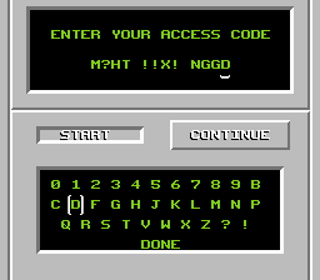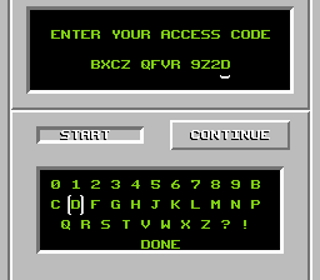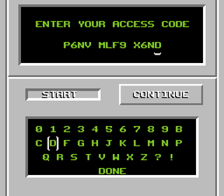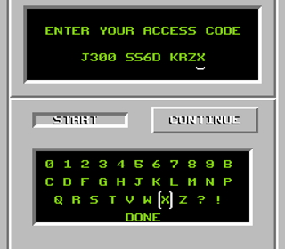 Press Start several times to skip the opening scene and go to a screen with the Start and Continue options. Select the Continue option and use the D-Pad to select each character for the password you wish to use. Press the A Button to enter a character. The B Button will move the cursor back a space. Select “Done” at the bottom of the screen then push the A Button when you are ready to start the game.