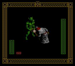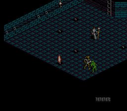 Touching a hostile NPC will initiate combat. In combat mode, players must use the directional buttons to dodge while holding A down and the B button to slash at enemies with the sword. Attacking causes the wizard (and his opponent) to become fatigued as indicated by a red meter alongside the health bar. Fatigue will make you move more slowly for the duration of the battle. Hit the enemy enough and it will die, allowing the wizard to move on. In addition to combat and exploration, The Immortal features obstacle courses that are navigated with the flying carpet or by rowing an old barrel down a waterway. This game has about seven stages and allows players to continue where they left off via a password system.